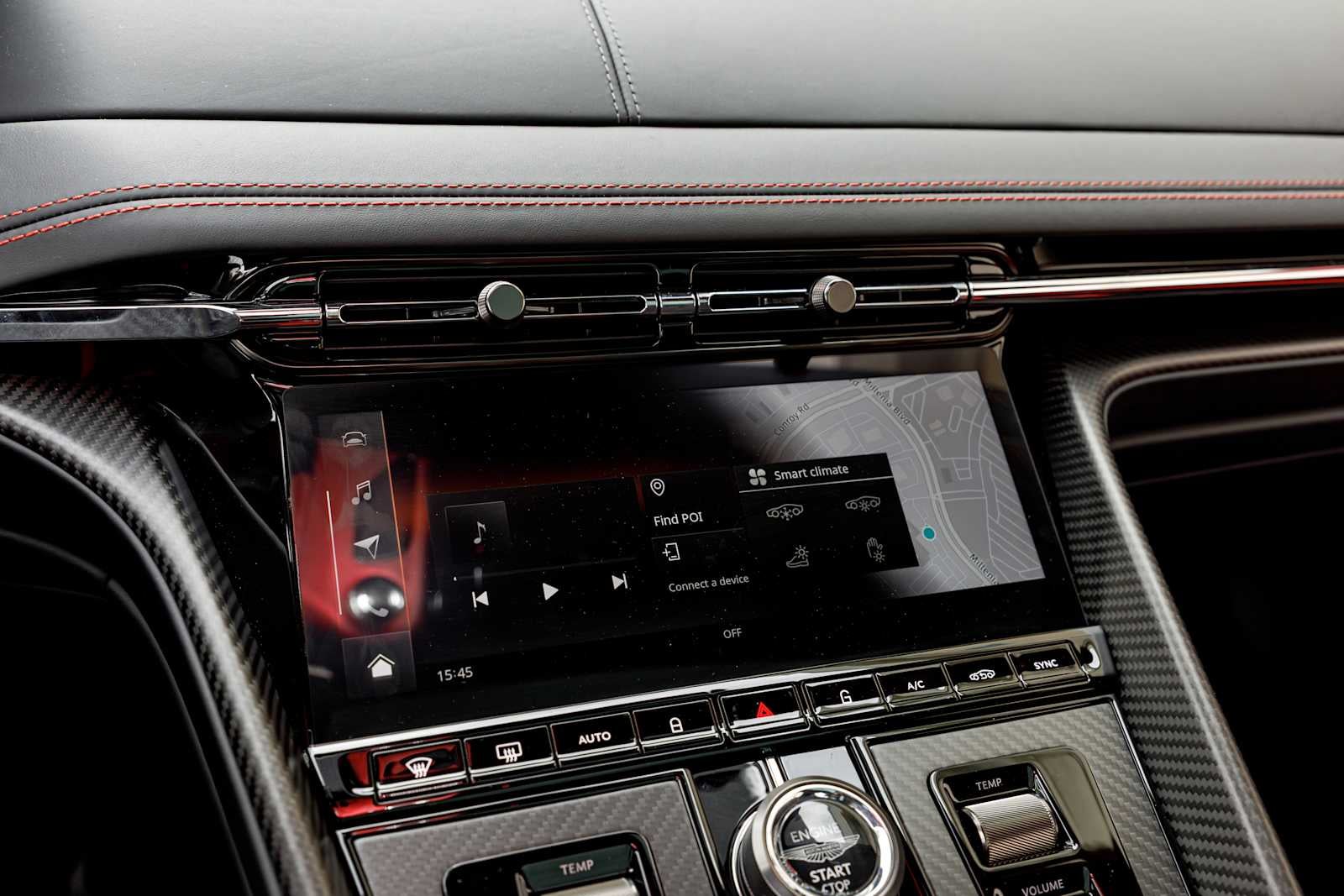 - Radio: 390-Watt Aston Martin Audio System -inc: 11 speakers, 10.25" TFT touch screen central display, Apple CarPlay, AM/FM/HD/DAB radio, wireless phone charging, Bluetooth® mobile phone connectivity w/audio streaming, natural voice control, satellite navigation system, SiriusXM satellite radio, 2 USB ports and 12v charging socket